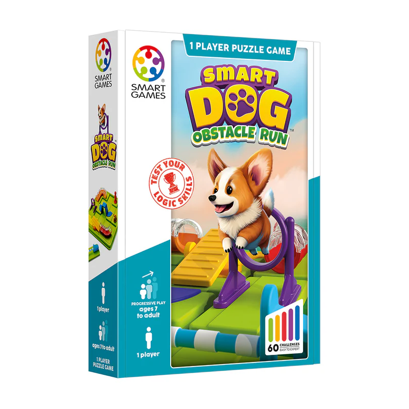 Smart Dog este un joc de logică tip puzzle din seria Smart Games, cu 60 de provocări progresive, care îi provoacă pe copii să creeze trasee corecte de obstacole pentru cățelul lor. Joc educativ, portabil, recomandat pentru vârstele 7+, perfect pentru dezvoltarea gândirii logice și a concentrării.