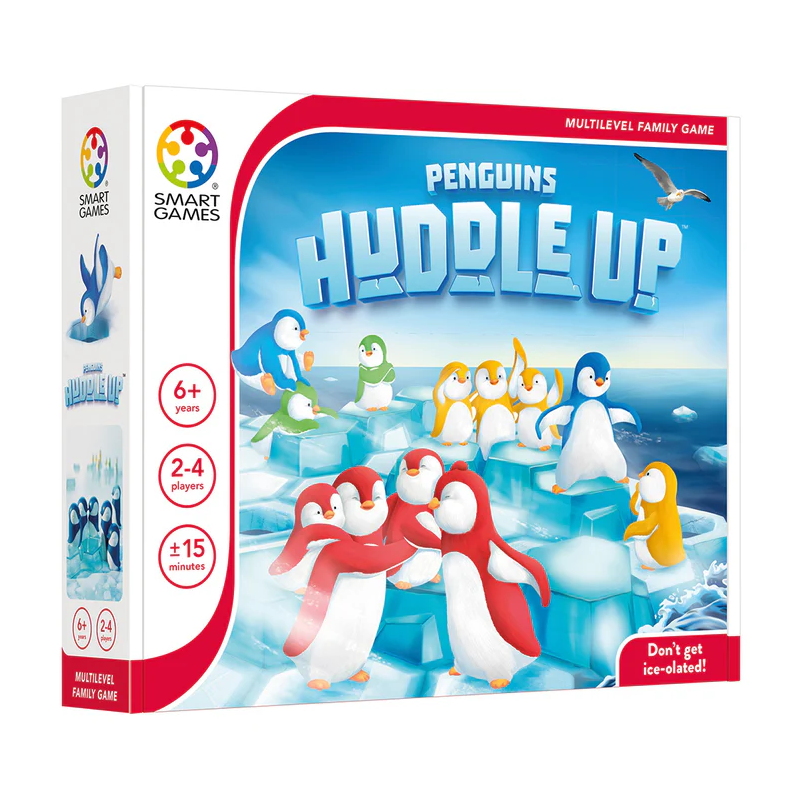 Penguins Huddle Up este un joc de societate strategic pentru 2–4 jucători, din renumita serie Smart Games, creat special pentru a dezvolta gândirea logică, planificarea strategică și luarea deciziilor într-un mod distractiv și competitiv. Jocul se remarcă prin componente de înaltă calitate și un design atractiv, potrivit pentru copii și întreaga familie.