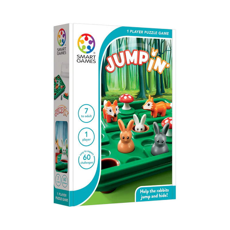 Jump’In Smart Games este un joc de logică pentru copii 7+, cu 60 de provocări captivante în care iepurii trebuie ajutați să sară și să se ascundă. Ideal pentru dezvoltarea gândirii logice și a creativității.