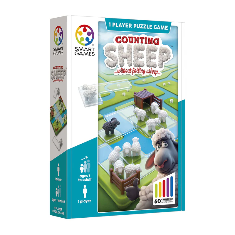 Counting Sheep este un joc de logică și puzzle din seria Smart Games, recomandat copiilor de peste 7 ani. Cu 60 de provocări cu dificultăți crescătoare, jocul dezvoltă gândirea strategică și abilitățile cognitive. Găsește poziția corectă pentru turma de oi, rezolvând provocările și crescând dificultatea pe măsură ce avansezi.