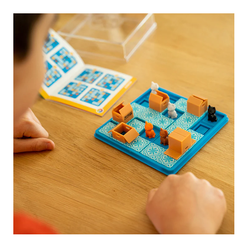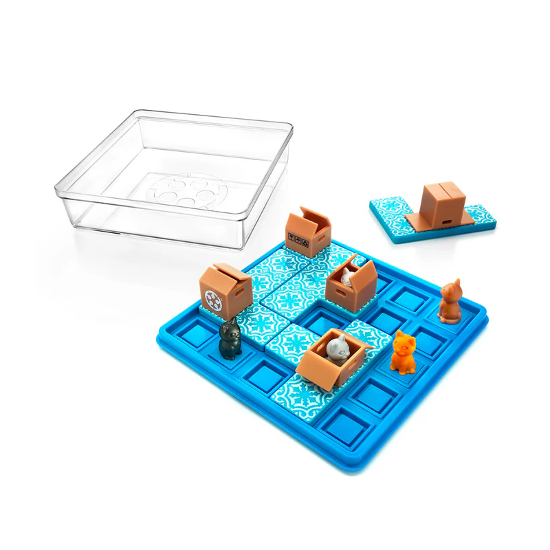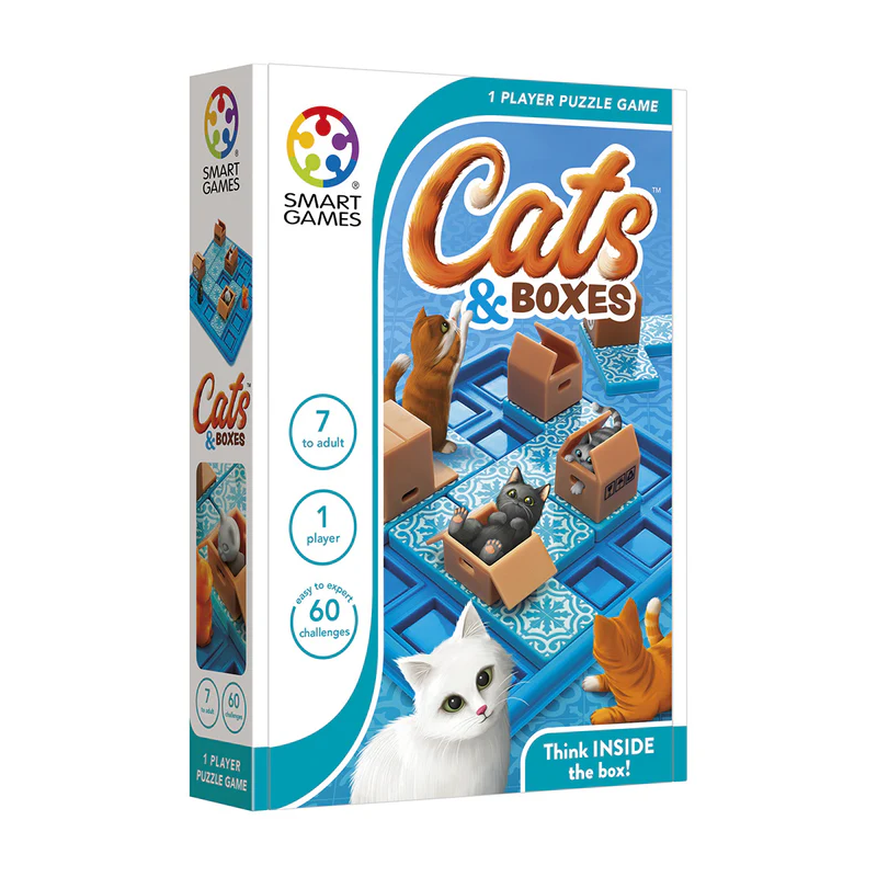Cats and Boxes este un joc de logică și puzzle din seria Smart Games, recomandat copiilor de peste 7 ani. Cu 60 de provocări cu dificultăți crescătoare, acest joc captivant dezvoltă gândirea logică, abilitățile cognitive și strategia. Scopul jocului este să ajuți pisicile nerăbdătoare să-și găsească cutiile preferate, mutând piesele puzzle până când fiecare pisică ajunge în locul său ideal de dormit.